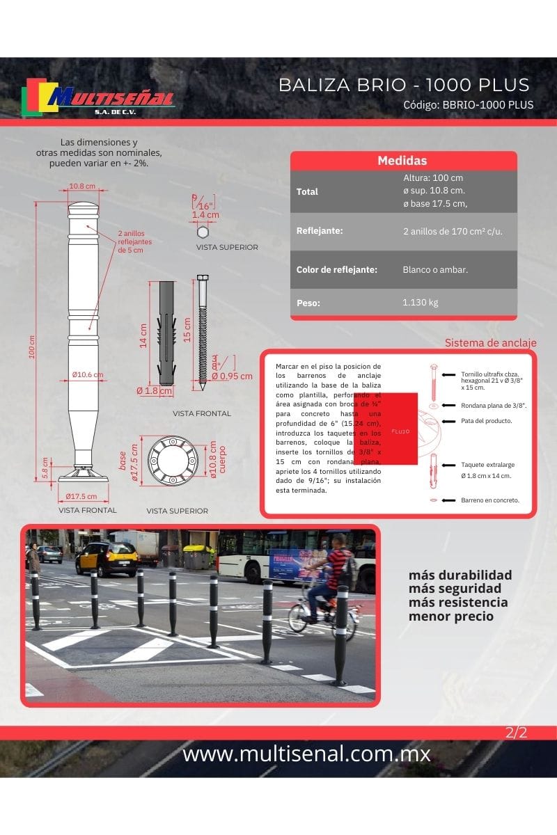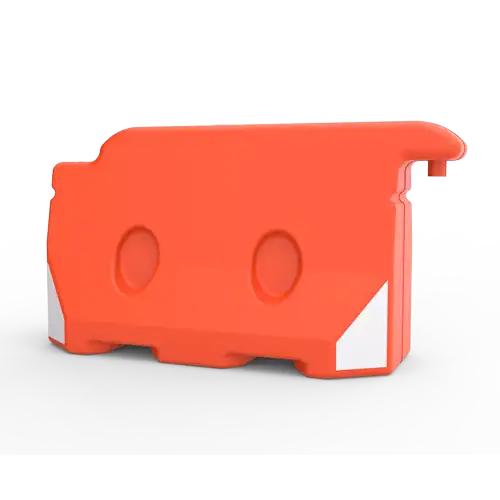 Barrera de seguridad vial, moderna y versátil ya que se puede llenar de agua, arena o usar vacía; fácil de manipular.