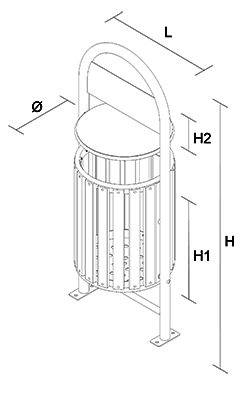 Referencia (mm):H 1600 L 1200 L1 500 Ø 490 H1 650 H2 200/br>