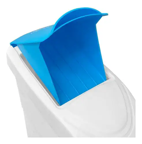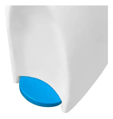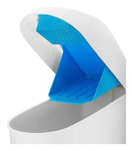 Bote especial para las toallas sanitarias, accionado con pedal, con el tamaño y la capacidad ideal y con un sistema de doble puerta, que evita que salgan olores, además de contar con un soporte para pastilla desodorante en el interior de la tapa.