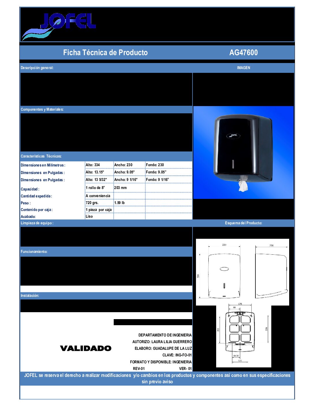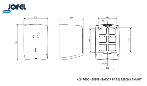 Dispensador box de papel bobina mecha en continuo. Requiere bobina especial, apoyada en su lateral y sin mandril para dispensar por el centro de la base. COLOR : Base y tapa negro. *Indicado para establecimientos de alta rotación. *Especialmente recomendado para hoteles, restaurantes, bares, talleres, fábricas, hospitales, clínicas, laboratorios.