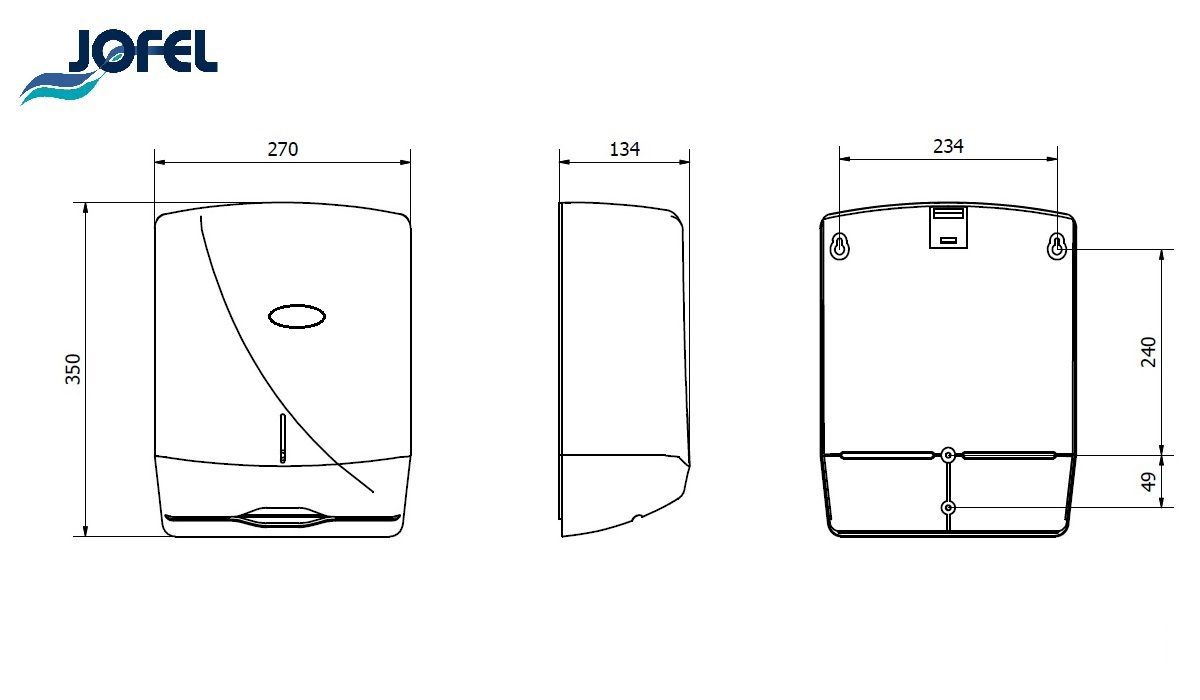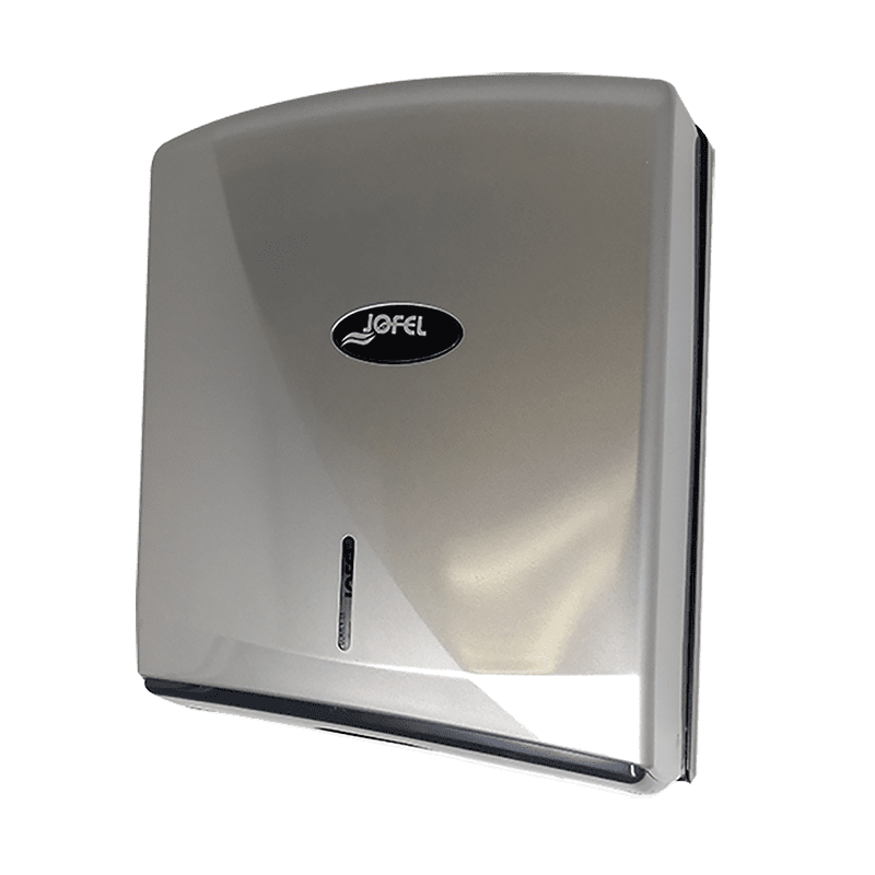 Dispensador para colocar papel toalla interdoblada. Tapa en color silver con ranura para observar consumo de papel y base en color negro. Recomendado para lugares de alta rotación y W.C. públicos.