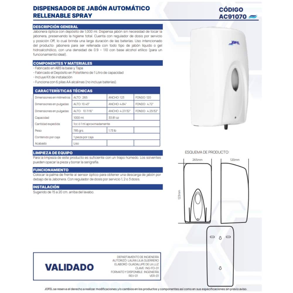 Fabricado el Depósito en Polietileno de 1 Litro de capacidad