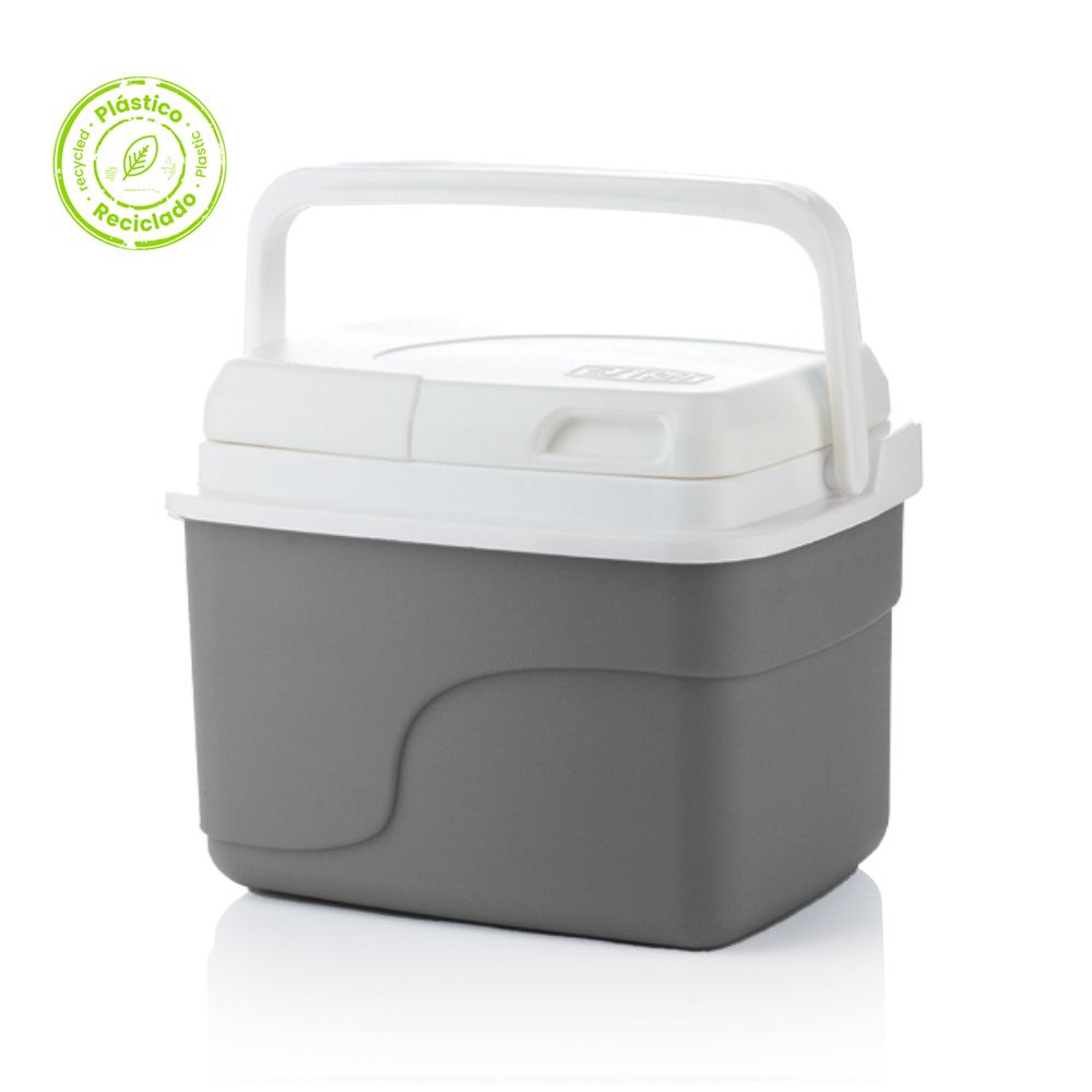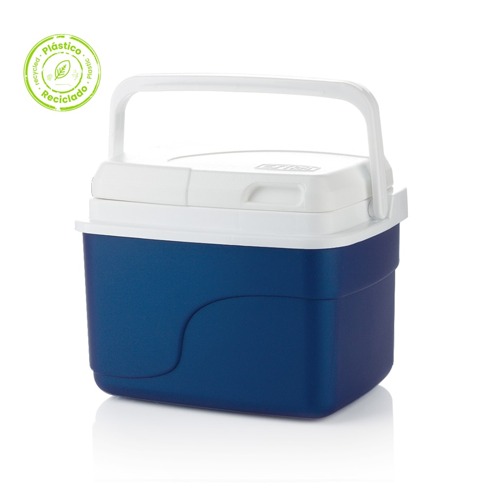 Hielera portátil hecha con poliuretano de alta densidad e inyección de plástico. Cuenta con tecnología para mantener su interior a una temperatura constante.