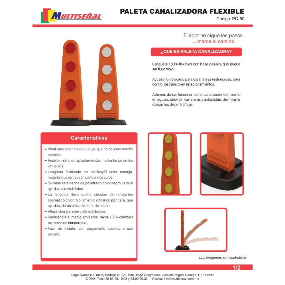 La seguridad es la prioridad en cada detalle de esta lengüeta vial. Con cuatro círculos de reflectante prismático en cada cara, disponibles en rojo, amarillo o blanco, su visibilidad es óptima tanto de día como de noche, lo que reduce el riesgo de accidentes en entornos oscuros o de baja visibilidad.