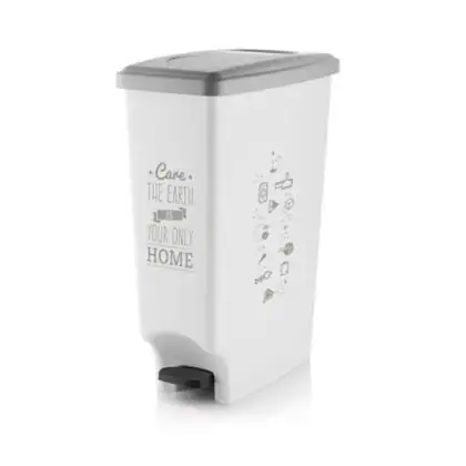 Práctico sistema de pedal que ofrece mayor comodidad e higiene. Tamaño que se adecúa a espacios reducidos. Esquinas redondeadas y superficies lisas que facilitan la limpieza y evitan la concentración de moho y suciedad. Sencillo sistema para ajustar la bolsa en el borde superior del contenedor.