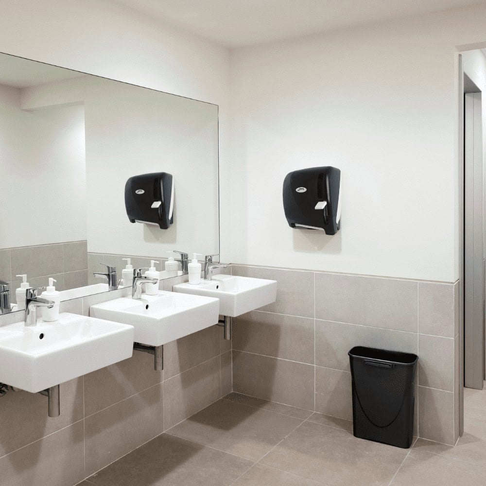 Dispensador de Toalla en rollo, accionamiento por Palanca, cerradura de tres puntos. Se sugiere colocar 1 rollo de 8″ (203 mm). Color de producto: Base Blanca. Tapa Humo, con visor para ver consumo de papel. Recomendado para lugares de alta rotación. Especialmente para colectividades, oficinas, hospitales, clínicas, consultas, etc.