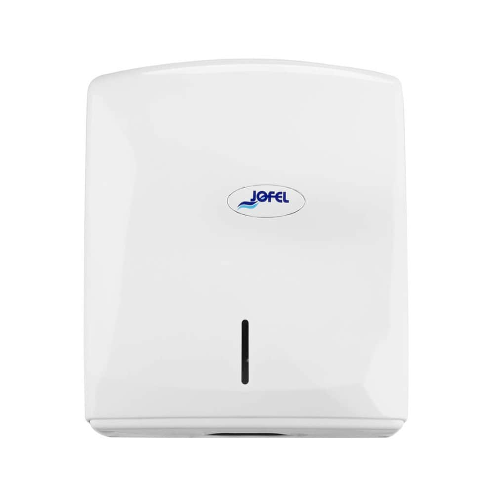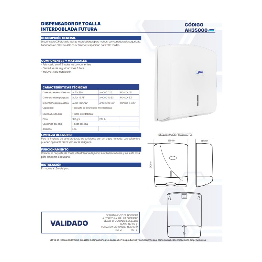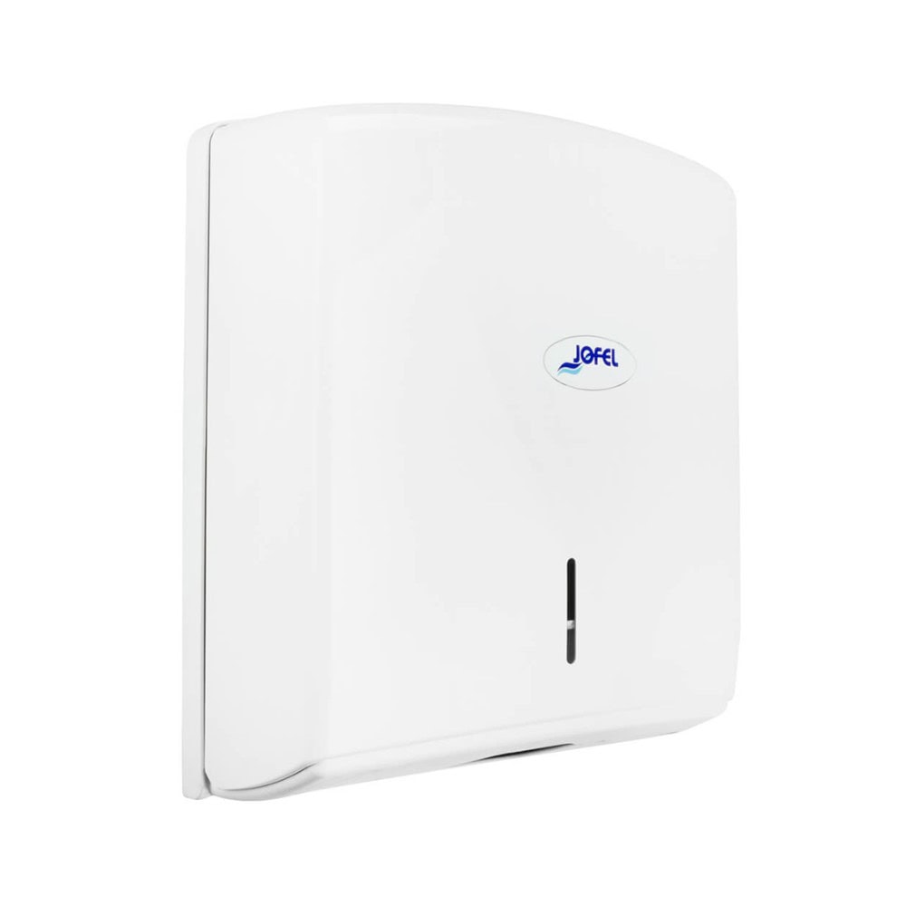 Dispensador para colocar papel toalla interdoblada, Base y Tapa Blanca con ranura para observar consumo de papel.Recomendado para lugares de alta rotación y W.C. públicos.